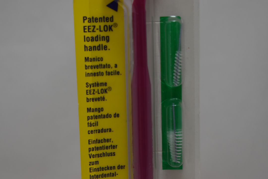 Παρέχεται με 2 μεσοδόντια βουρτσάκια, ένα κυλινδρικό και ένα κωνικό.
