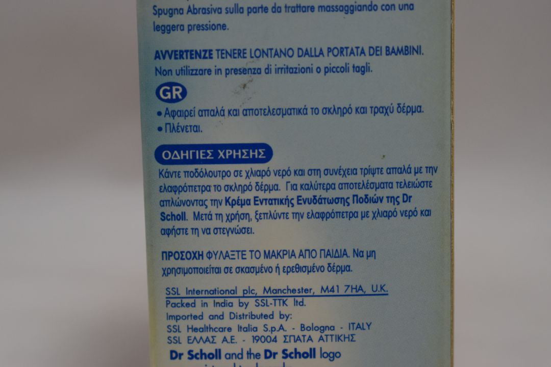 Ελαφρόπετρα από Πωρόλιθο (Dr. Scholl) αφαιρεί απαλά και αποτελεσματικά το σκληρό και τραχύ δέρμα, αφήνοντας την επιδερμίδα λεία και απαλή.